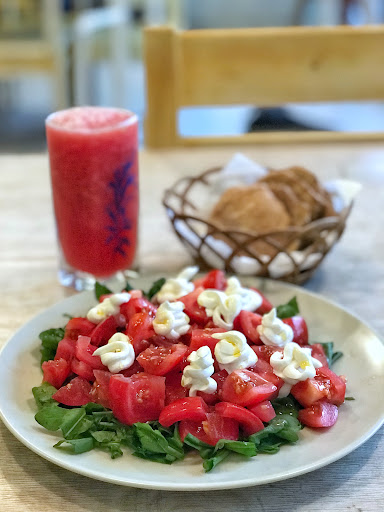 To start I had the homemade chicken noodle soup with boiled egg and a side of homemade bread. I found it quite odd to have an egg in my chicken noodle soup but it turned out to be a very pleasant surprise. Next I had the rocket, tomato and feta salad with olive oil and it was exactly what I was hoping it would be -- delicious! I washed it all down with a fresh watermelon lemonade.
