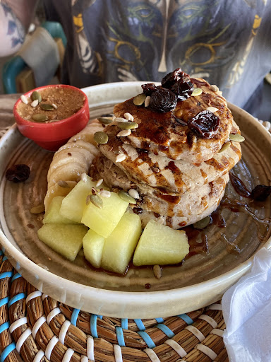 First of all I want to thank owners for creating this place in the heart of Dahab 🖤 fully vegan, with clean ingredients, just bravo 👏🏼 We dined in and had breakfast there during our entire stay. So we tried a lot of dishes from their menu and absolutely fell in love with salted caramel popcorn latte - in a chill evening it’s a drink for your soul. Everything we tried was from good to amazing and the place itself is very chill and cozy. Stuff is friendly and nice, since they cook everything from the beginning you will have to wait for 25-30 min for dish to come. We had two situations (out of 5 days eating there breakfast and lunch) when we didn’t like the dish and they were sweet enough to change it straight away. They also have a list of products they make themselves and guy can buy from them to use at home, like spreads, bread and cakes 🖤 Wish this place all the best and we will definitely come back,...