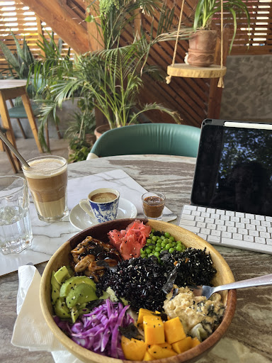 First of all I want to thank owners for creating this place in the heart of Dahab š¤ fully vegan, with clean ingredients, just bravo šš¼ We dined in and had breakfast there during our entire stay. So we tried a lot of dishes from their menu and absolutely fell in love with salted caramel popcorn latte - in a chill evening itās a drink for your soul. Everything we tried was from good to amazing and the place itself is very chill and cozy. Stuff is friendly and nice, since they cook everything from the beginning you will have to wait for 25-30 min for dish to come. We had two situations (out of 5 days eating there breakfast and lunch) when we didnāt like the dish and they were sweet enough to change it straight away. They also have a list of products they make themselves and guy can buy from them to use at home, like spreads, bread and cakes š¤ Wish this place all the best and we will definitely come back,...
