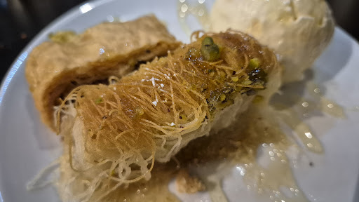 My husband and I went for my birthday this restaurant was recommended by the ghost walk team upon booking that. So a HUGE thanks to you 😄 Wow it was amazing from walking through the door It felt very authentic. We was greeted & welcomed with a smile .There was Greek music playing the smells where devine coming from the cooking in the open kitchen 😝 It felt like being back in Greece which we love visiting 🙂 All the staff where very friendly and our waitress was very knowledgeable about the wine 😛 Try ( MoKo) Sauvignon Blanc Now to the food it was five stars 🤩✨🌟⭐ From the presentation tasting to eating it 😛 My hubby had the Keftedes (meatball's) in tomato sauce which I sampled of course.. We rec it's the best sauce we have ever had 😍😝 I had Houmus with warm pitta's totally yummy 😋 for our mains we both had Souvaki (chicken ) skewers with rice again (OMG)we loved the flavour of the rice it was simply devine 😍🤩😝 We had the cheesecake & apple pie with ice cream to finish again 😝 We are so glad this place was recommended to us ☺️ I noticed a couple trying all 22 dishes again this all looked 😛😝😜😋 it is a fantastic way of trying all the dishes for the price which is excellent value for your money 😃 We would highly recommend this restaurant and advice booking . You will not be disappointed Now to ALL the staff ( I hope this is correct ) Efcharisto gia sas exochos gefstikos fagito ☺️Stin ygeia sou...