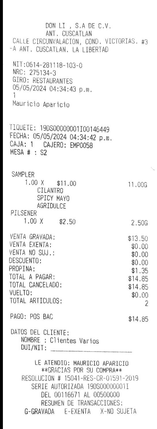 Read moreWe went to this place at around 3:30 pm, place was not busy at all, we went to the 2nd level, going up the stairs it was not a pleasant experience, some cleaning will help. Once inside the salon, we waited for about 10 mins for the initial contact. I order a local beer and a sampler. About 15 mins later the server brought the beer with a glass and left. The beer was room temp and the glass felt like it just came out of the dishwasher (hot). Maybe 7 mins later the server came by and I told her that the beer was hot, she said that she will take the opened beer, place it in the fridge and bring it later because it cannot be exchanged because I took a sip (this is real). The sampler took about 30 mins, when they finally served the sampler, it was cold, it seems that it was left unattended for a long time before serving it to us. I went downstairs and complaint to the cashier, who told me, the beer is in the fridge if you want it, I said, don’t worry, close my ticket, believe it or not, they charged me for the beer and the sampler, not a single apology. Be careful when you visit this place, apparently they take used beers and place them back in the fridge (nasty). If you ask for a beer make sure that you open it yourself. I gave them one star because I cannot go lower. It is the worst experience I ever had in El Sal.