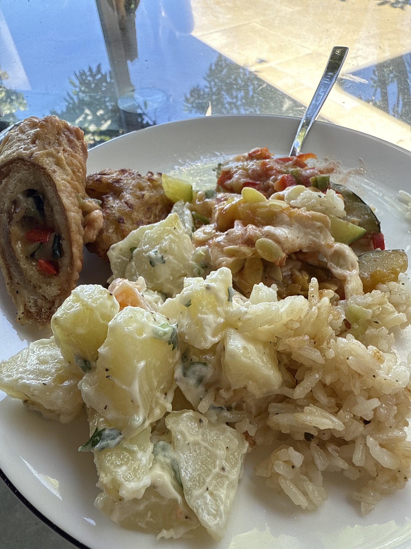 Had a different assortment of veggies, rice, noodles with soy meat and a soup. In general it was tasty but was hoping for a bit more flavours.
