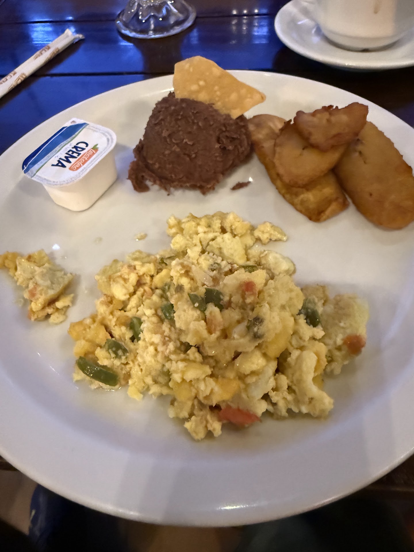 Went today for breakfast after an appointment at the US embassy. We ordered 4 breakfast plates: Two Texas breakfast plates, one burrito plate and one American breakfast plate. The burrito was good, the Texas were good except for the plátanos fritos, they were cold and chewy, I'm sure they had been sitting there for over an hour because there's just NO WAY a freshly made plátano frito has that texture. Then the French toast from the American plate was too crunchy, and the hash brown was still frozen from the inside and barely warm and cooked on the outside. I told a waiter about the hash brown and he said that all he could do was to reheat, so I agreed and It came back perfectly fine. We didn't tell him about the plátanos because if he was going to only reheat them as well, they would end up worse. The service was fast and the staff was nice. But the poor quality of the food is disappointing, I'm never going back to this location. I've been to several other locations throughout San Salvador and the one in Santa Ana, their food is...