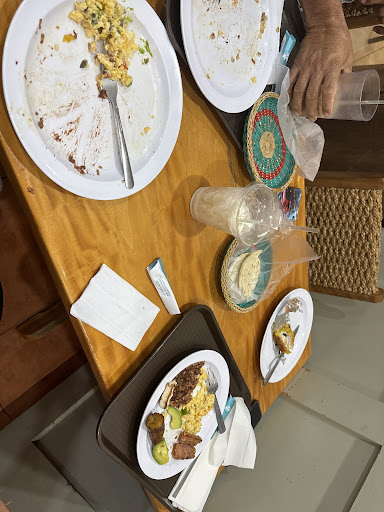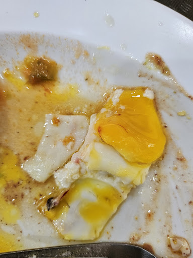 Read more1-las mesas estaban sucias, no las habían recogido, NO estaba lleno el restaurante como para decir que estaban ocupados, simplemente no habían querido limpiarlas, la mayoría aun tenia las bandejas, los platos o simplemente estaban sucias de migajas , no les habían pasado ni un trapo 2-cuando me dieron el pan frances, el plato tenía JABON, literalmente el plato tenía un pedazo de jabón verde, lo cual le hice saber a la empleada y lo cambio 3-le pedí del desayuno el queso aparte, por un tema de ALERGIAS, la muchacha quizqs pensó que por vacil se lo pedí así, porque lo que hizo fue ir a aponer el queso junto al chorizo y usar los mismos utensilios 4- el servicio demasiado tardado, es una modalidad de comida a la vista, la comida ya esta hecha, pero la muchacha que servía ponía el platano en el plato y se iba, regresaba a poner el frijol y se volvía a ir 5- a este punto, decidí ya no pedir el segundo plato para mi esposo, ya que el servicio se veía que iba de mal en peor 6- para mi sorpresa el huevo estrellado tenía SANGRE y para esto adjunto una foto 7- la tomatada parecía agua, igual los frijoles, realmente todo esta mal con ese restaurante Horrible experiencia realmente, a la próxima mejor pongo los $6.50 en la basura directamente porque fue exactamente donde se fue mi dinero al comprar ahí, no visitaré ni esta, ni ninguna otra sucursal de tipicos margoth, no entiendo como pueden tener tan bajos estándares de calidad y atención,...