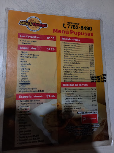 El lugar lo han puesto en una acera pública, venden pupusas tradicionales y un par de ingredientes mas. También venden tortas, carnes y tacos. En ocasiones hay refresco naturales. Respecto al parqueo, no tienen, entonces deberá de dejarlo en los alrededores y de ahí caminar hasta el lugar. En la noche aunque las canaletas estén pintadas de amarillo, usted podrá parquearse y no le dirá nada los de tránsito. Sí busca comer económico en carne, casamientos y chirmol, entonces coma frente a este lugar, solo se cruza la calle, 2...