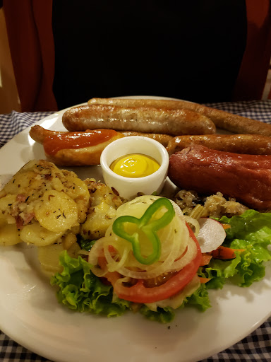 I had gone before to this restaurant many years ago but when I went this time, it felt totally different. We went on a Tuesday so it was empty. The food was delicious, they have over 80 different plates but most of all relate, sth like 5 types of milanese and 6 types of sausage plates, etc. I loved the milanese it was so moist and tender, accompanied with the best smashed potatoes ever with mushroom sauce and salad. Everything was ok, but the decorations. They were soo creepy 😶 I'm not kidding I mean there were animal heads all over the walls and I get it I mean they are a Hunter's house after all, but then there were also religious sculptures too, on the stairs and the second floor. A mix between the prays and jesus and that kinda freaked us out a little bit. The price is also a bit high, like $20 per person and ours had a free German beer, the food is good but the interior design did not cut it. Also, there is another German place called Casa Kuku and the sausage platter has...