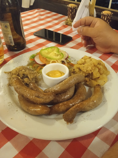 Read moreTener una experiencia de 5 estrellas es algo peculiar pero he quedado asombrada en varios aspectos iniciaré con: El lugar: es un lugar agradable las mesas están a distancia de otras la decoración te hace sentir que estás en una cabaña de un cazador realmente, el lugar estaba solo debido a que es inicio de semana me imagino pero es de ambiente agradable con música a un volumen realmente bajo para tener conversaciones sin gritar muy agradable. El Servicio estuvo muy muy bien, cada plato que pregunte que llevaba me lo explicaron perfecto al igual que las cervezas. La comida y más importante primero nose si debido a que solo habíamos 4 mesas de comensales pero el tiempo de espera fue mínimo y eso fue genial. Para iniciar pedimos un bretzel de mantequilla llegó realmente caliente y humeando con un sabor y textura diferente fue bueno con un sabor a especias sutil y salado. Cómo platos principales pedimos: Salchichas blancas con curry que están deliciosas con 3 acompañamientos que son realmente buenísimos ese repollo agrio es delicioso delicioso, la ensalada fresca nose diga a simple vista es una simple torrecita de lechuga ejotes, zanahoria, rábanos, tomate y cebolla pero cabe destacar que cada vegetal estaba sabroso tenían sabores con un toque ácido, dulce muy sutil delicioso y las papas a la caserola son buenísimas realmente suaves y crocantes con toque de especias. Lleva mostaza y el curry como aderezos en mi caso pedí el curry aparte pero lo lleve realmente sobre las salchichas 6 salchichas Nurenberg es el siguiente plato que déjenme decir las salchichas son aún más sabrosas con un toque de especias es una combinación de carnes muy deliciosa está también lleva los mismos 3 acompañamientos y aderezo de mostaza. Bebidas: Las cervezas recomiendo las de sabor a fruta probé las 3 que tienen disponibles arándano, frambuesa y Cherry y déjeme decir que son deliciosas sobre todo la de sabor frambuesa es exquisita, la cerveza oscura está muy buena también eso si es algo fuerte pero deliciosa y de las claras las dos que probamos son muy muy buenas también son de sabor más sutil y efervescentes. Los precios: las entradas van desde $9.00 y los platos de salchicha van desde $13.00 las cervezas tiene precios algo elevados desde $6 y $8 en adelante pero valen realmente la pena. Mi única queja es que no tienen elenu en físico es por QR aunque te facilitan el menú en una tablet.