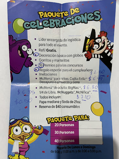 Read moreNO recomiendo este McDonald’s para cumpleaños, súper mala la atención, yo reservé la area infantil el sábado 5 de octubre 2024 a las 7pm y con mi hija pasamos un horrible cumpleaños, Yo llegue a las 6:40 y estaban empezando a poner los globos, se nos metían papas y niños que no eran invitados en la piñata (yo soy cliente frecuente y sé que muchos fines de semana mi hija No me la dejan entrar porque está reservado por un x cumpleaños ) , Letrero de reservado no me lo pusieron, NO me pusieron todo lo que cobran o todo lo que incluye el paquete de cumpleaños manteles, aderezos, servilletas, yo con pena porque Todos mis invitados pedían de todo a la hora de comer (aderezo y servilletas) a la hora de la piñata todos los niños que nose quienes eran esperando que reventaran la piñata para agarrar dulces, Un niño estuvo a poco de que me botara el pastel al inicio del evento, Llame la atención a la chica de quien me llevaba el evento más de 7 veces y al “Gerente” 2 veces que ósea había reservado y No podían tomar control de que cualquier gente se me metiera al cumpleaños. Me dejaron mucho que desear, y No vuelvo a elegirlos para el cumpleaños de mi hija Ni lo recomiendo para Nada, Malísimo servicio. Y solo como el gerente no podía ser nada, solo de compensación me...