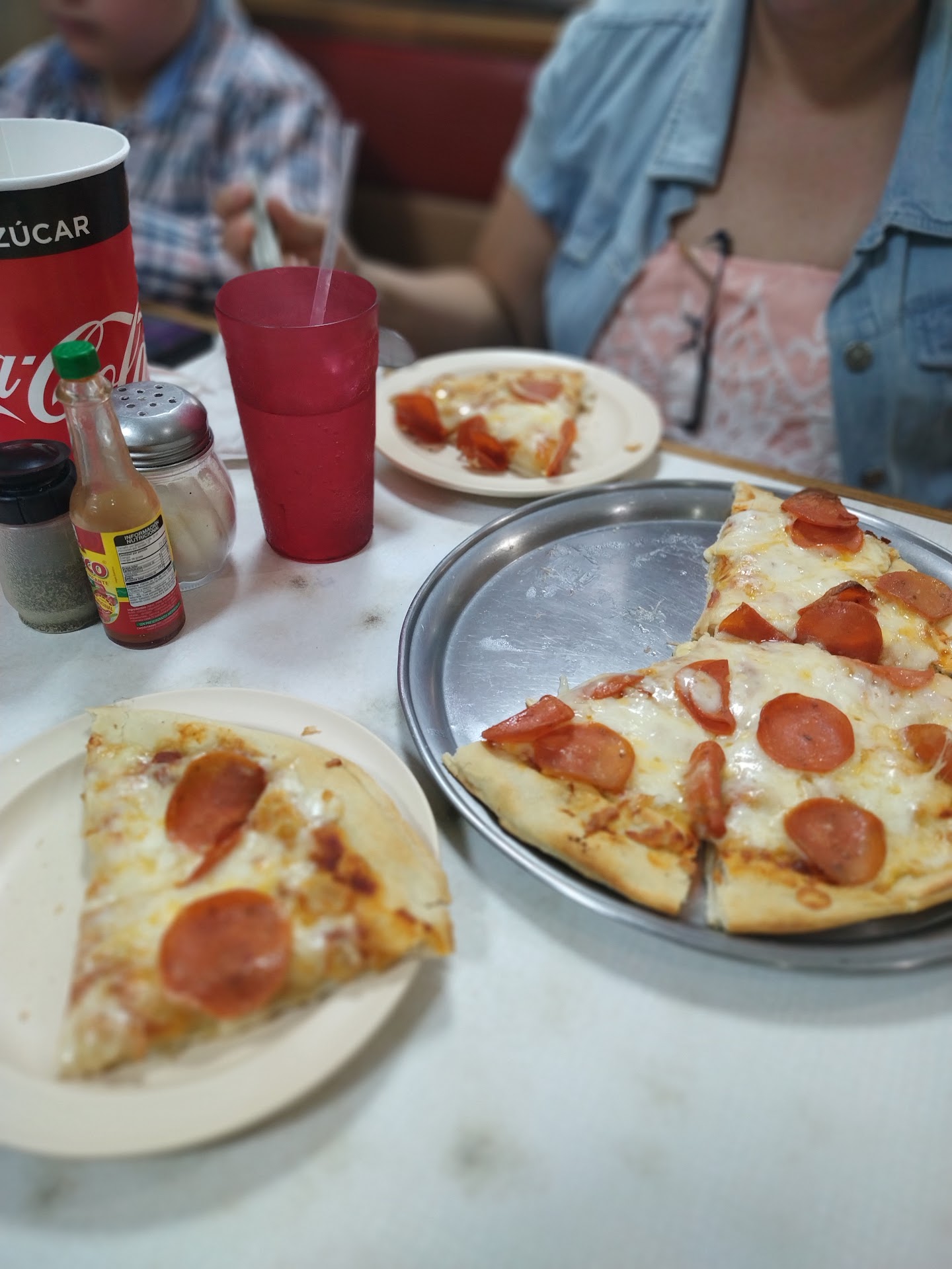 Read moreLe dimos como mil vueltas al centro para poder llegar ya que con la dichosa construcción de la biblioteca la mayor parte de las calles están cerradas al llegar tuvimos que buscar un parqueo privado ya que no cuenta con uno el establecimiento (tomar en cuenta no hay parqueo) a la hora de ordenar varias cosas en el menú que no tenía y cuando por fin nos sirvieron pues la masa estaba fatal se sentía como demasiado fermentada como que se les pasó de levadura no llevaba mucho queso el jugo de naranja insípido.... Bueno creo que tiene demasiada reputación de buena...