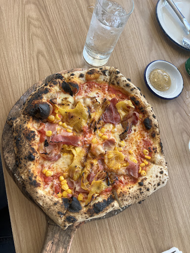 La comida fue excelente. Me gustó que hay una buena variedad de opciones en el menú. Mientras mis amigos pidieron platos que incluían mariscos, yo pedí una pizza Bahamas. Pensé que sería tamaño personal, pero me sorprendió gratamente su tamaño: era lo suficientemente grande como para compartir. El sabor era delicioso, con una combinación de ingredientes bien balanceada.