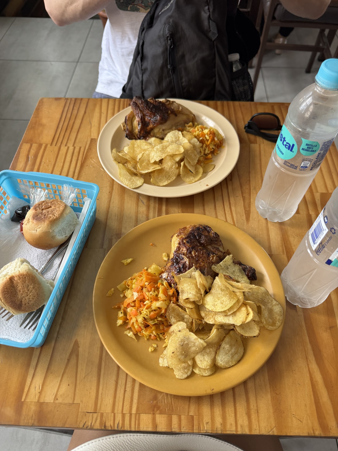 Read moreIs this place serving the best chicken in San Salvador or the whole of El Salvador? I heard it is I had to come and try. It serves flame grilled chicken but not the normal fried chicken. I was there early and the queue was quite long already. The take away queue was long but the dine in queue was quite okay, however the tables on the ground floor were already all occupied. A lot of grumpy ladies working here so don't really expect good service but in general was okay. Turned out to be a drama for me because I appeared with a 100USD note and they didn't want to accept. They asked me to go exchange for small change at the supermarket which also rejected and in the end directed me to visit a bank. So I returned back 2 hours later and the queue was even longer than before. This time round one of the ladies recognized me and prepared my food rather quickly. I went to the upper floor since the ground floor was packed and upstairs was pretty quiet. I have to say the chicken is well grilled and still pretty juicy, and the seasoned cabbage is definitely a good complement to the chicken. However the potato chips and the bread are totally weird items to be included in the meal. When I left the restaurant the takeaway line was already chaotic. I guess that speaks how popular this...