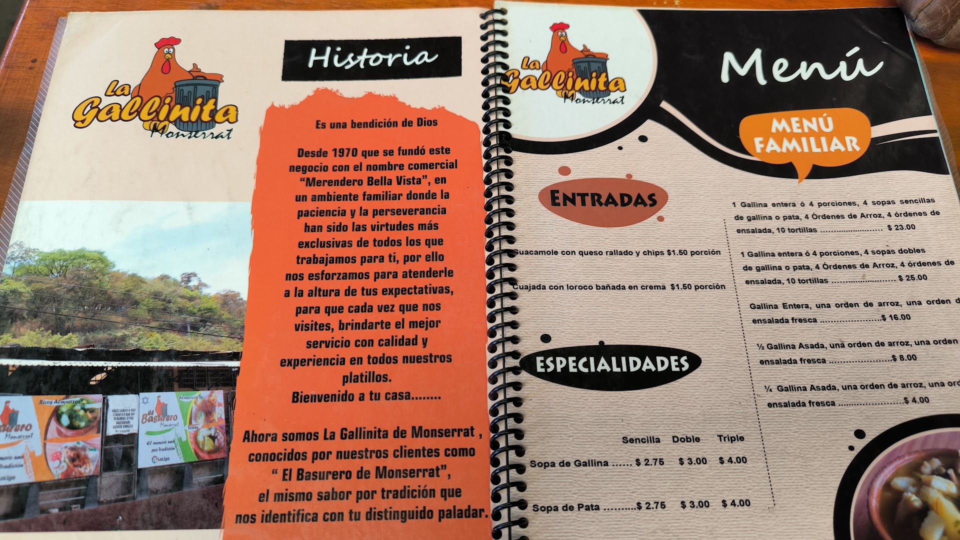 Read moreEl lugar cuenta con parqueo no muy grande pero aceptable, tiene entrada por la autopista o por la calle a Monserrat, el local es amplio y agradable, posee un ambiente familiar, la comida, hay combos familiares a buen precio y la especialidad es la sopa de gallina y la sopa de patas, venden cocteles y platos de carne, hay bebidas naturales, sodas y cervezas todo a precios accesibles, el local posee baños, buen ambiente, buen servicio y variedad de platos, lo recomienda para en familia con los niños en grupo de amigos, en pareja o con invitados, se cobra el 10% de propina sobre el consumo, dejo fotos del menú...