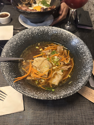 Las gyozas estaban riquísimas la salsa muy buena igual, sin embargo, no podemos decir lo mismo de las sopas, la sopa de coconut curry tenía un marcado sabor a caldo instantáneo Maggi, y la sopa de wantan aunque tenía una buena consistencia, y sabor, los wantanes venían rellenos de una carne molida de res insípida.