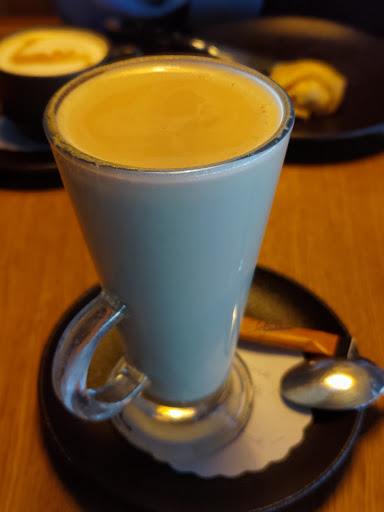 Не рекомендую это заведение! Сервис просто отсутствует, не могут даже кофе нормальный сделать, что уж говорить о подаче газированных прохладительных напитков взятых с верхней полки нагретых лампами, которые при открытии вытекают прямо на глазах у клиента на прилавок кассы ( пришлось просить открыть новую охлаждённую, сами бы не догадались). УЖАС! Прежде чем ставить в смену работников, необходимо хотя бы обучить их элементарным правилам обслуживания. Фото Café Latte прилагаю...принесли спустя 20 минут со словами: "Извините что так долго, прошлое не получилось." Как будто это получилось, стакан до краёв, молочной пены и в помине нет (даже пробовать не стала, деньги вернули 3.50€ за вот это). Заказанные блинчики оказались холодными, хотя и были засунуты перед подачей в микроволновку (проверьте исправность агрегата)...ладно бы это всё было первый и последний раз, но нет, к сожалению это не один неудачный поход к Вам, это как минимум 3-ий подряд за одну неделю и...