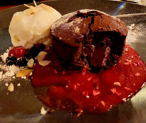 Have already left one very positive review couple of weeks ago after having a wonderful fondant cake with coffee and champagne at this place, but unfortunately after having a dinner there last night must change my opinion. Though we liked the taste of ordered food (aside from the fact that my plate/dish was rather cold) and visually it looked very inviting, all portions itself reminded us of children's menu. If i hadn't stuffed myself with a huge piece of cake after already having a first and main courses, i would be forced to stop by pizza restaurant around a corner. Cutlery were brought in a ceramic plant pot which were simply put on a table, as if we are in a buffet with self service. Considering the prices in that restaurant, I'd expect at least a proper service, where i wound't have to constantly remind a waiter to remove dust or reservation sign from a table, before we even take a seat. He served us desert before cleaning up from previous course, there were no place to put arrived plates at all, so he literally squeesed them in between the durty ware. It's a shame to save on a service staff. Must admit that the first and second times we were served by a very pleasant young lady, who seamed to know what she is doing, i guess its a matter of luck. It was actually my birthday dinner this time, which turn out to be a disappointment. I'll put it this way,- for coffee and cake TOP, but for dinner FLOP. KInda pity though. I live just around a corner from that place and was really hoping it would become my favorite reagular place to go for a bite with my family and dog, since it is a dog friendly restaurant, but now i'll think twice before entering these doors. I always tip in gastro, this time i only left a half of tips from what i actaully...