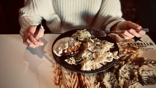 We went for lunch, had the daily special and two desserts. The waiter was kind. We were able to take one offer for two and share it: I wanted soup, my daughter wanted a main course. For dessert, we had a lava cake and fennels. The portions of the daily offer were large and the food had a good price-quality ratio. Unfortunately, the interior does not create a feeling of home. We were also disturbed by a woman talking loudly across the room. It might have been an acquaintance of the server, because the woman who served us was also in the group. Unfortunately, such little things are very annoying. We would go again for the food, never for the atmosphere. We were able to park the car in the yard because we had lunch later than usual. In general, I recommend going on...