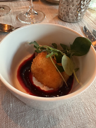Menüü: ⚬ Praetud camembert toormarjakastmega ⚬ Krevetivarras spinati aranchini ja musta trühvlikastmega ⚬ Kaheksajala carpaccio, kammkarp kevadise pestoga ⚬ Grillitud pardirind meekooriku, muskaatkõrvitsa kreemi, ahjuõuna ja musta ploomikastmega ⚬ Ingveri creme brulee mündi-maasikasmuutiga
