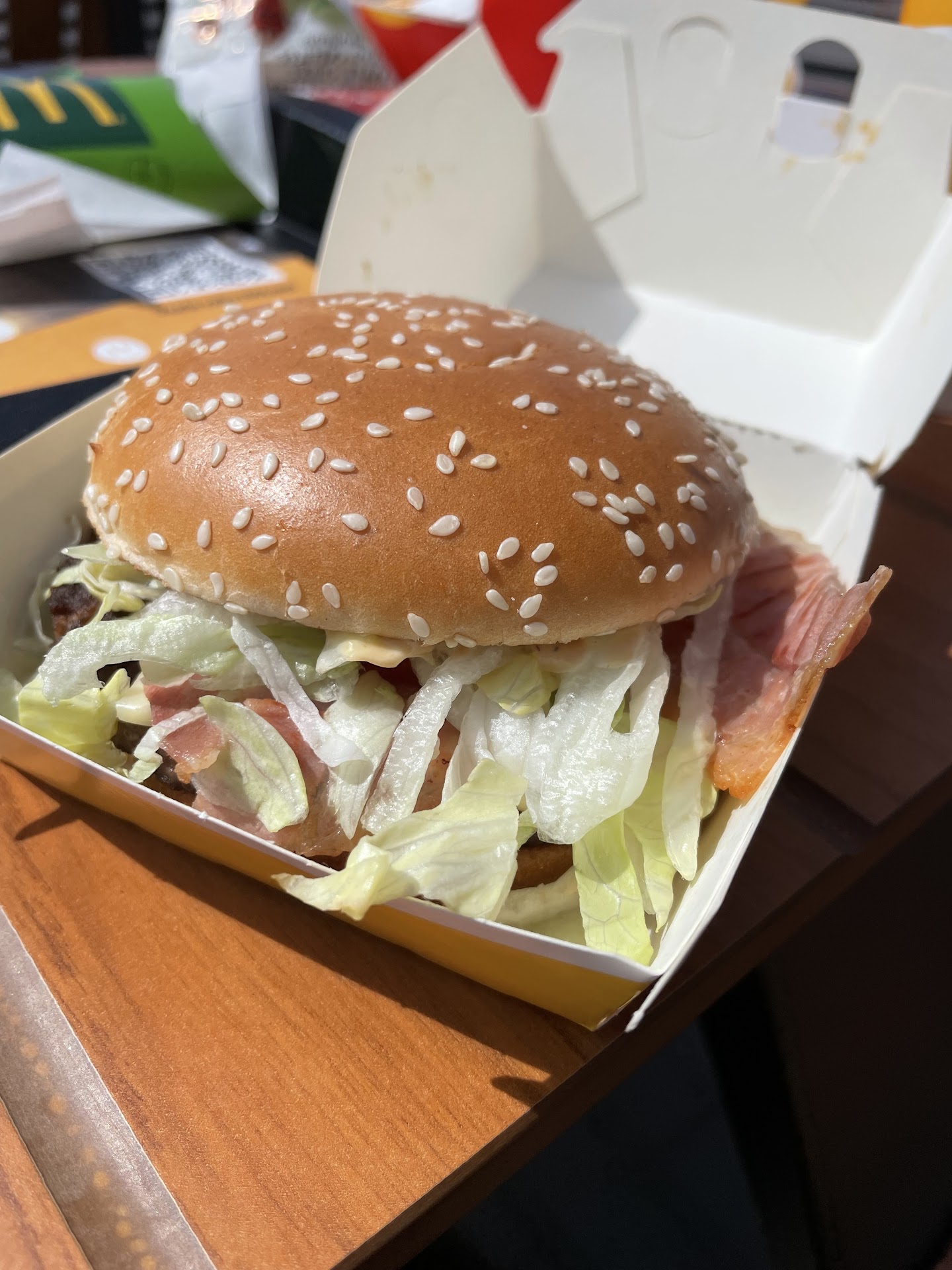 I know it's junk food, so yeah. Anyways, I got the Big Mac with bacon meal and 6pc Chicken McNuggets + 2 sauces which are: Sour Cream and Sweet&Sour (tried it for the first time!). The Big Mac with bacon was like a normal Big Mac+really salty bacon, wasn't as good as the classic. The fries are definitely unbeatable, but everyone has different opinions, so I'll let that slide. The McNuggets aren't any different the last time I went to McDonald's, it's still not fully chicken like everytime ;). I ate the fries with the sour cream sauce, and sour cream can't be beaten in my opinion, so no hate to the other sauces fans out there. I tried the sweet&sour sauce with the McNuggets, and I've got to say, it has a feeling when you think the spice will hit, but it never hits the spicy spot :) I would rate my dining experience a good 9/10. (I'm not a foodie please don't...