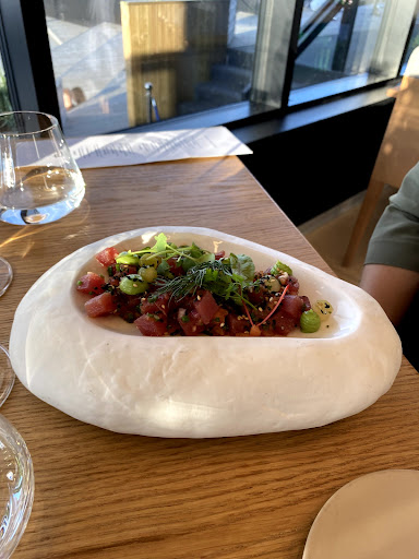 No caring about details. Otherwise there would not be dirty windows and spider webs everywhere. There might be a couple of people that actually care about the wellbeing of customers. But the head only cares about money generating. I could sense that in the way the restaurant represents itself with being all fancy but not caring about details. The kitchen is not really creative and doesn't really care much but tries to sell the food as amazing. example? Sure! Rice crisp on Salmon was everything else but crispy. Tuna Tartar with guacamole, cucumber and ginger. Or just fancy plated tuna Ceviche? The Beef tartar was really good but there is a difference between tartar and diced meat... the pieces were huge and way too chewy. Asparagus and wild garlic (karulauk) in August, in estonia? Also... I hope the sand and little stone in the duck dish wasn't a make up for the lacking crispness in the potato crisp in the first dish.