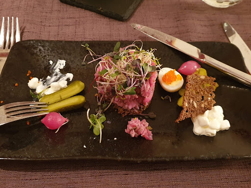For appetizer I ordered herring tartare with quail egg and wife ordered Estonian hummus selection. I would suggest the tartare. It was nice, with a fresh taste of herring. Really awesome dish. The hummus was a bit below average. I understand what they are trying to do but it is not for my taste. One of the third hummus was traditionalish but others were in my opinion too desperate to change something.