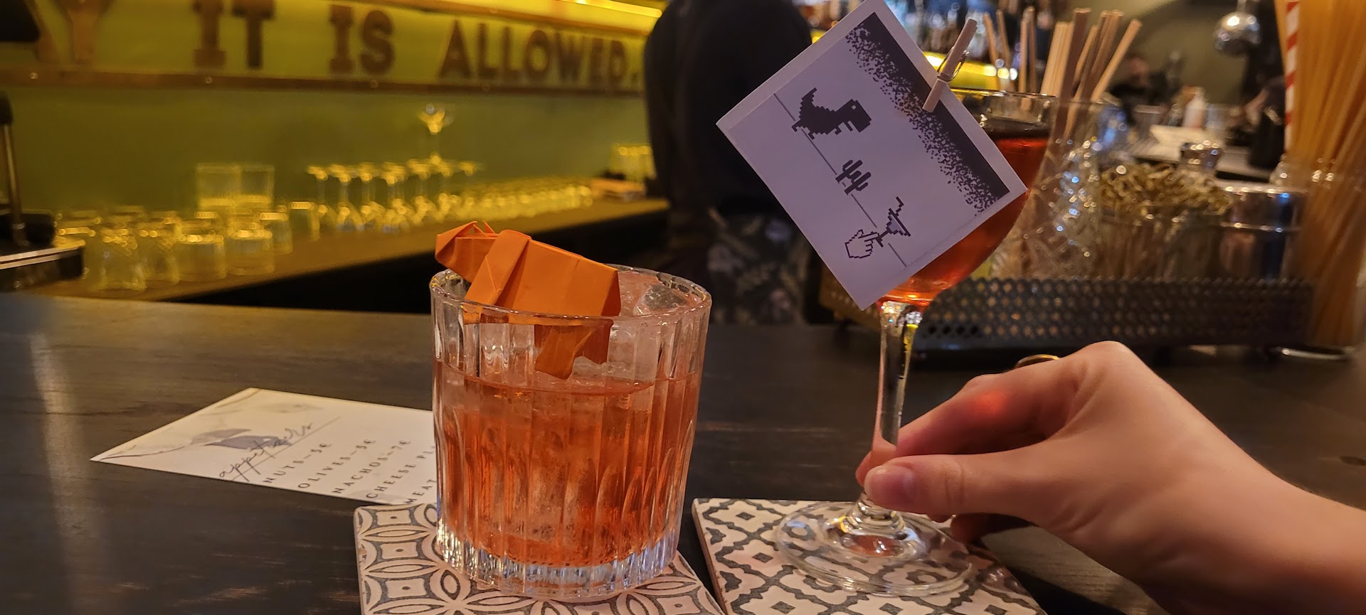 Read moreA night bar with a buzzy atmosphere and good drinks ruined by rude bar staff. I was looking through the menu at my table when one of the female staff bluntly said that menus cannot be kept on the table. I understand this may be their policy but there were two issues. Firstly the rude manner in which she told this but also there were at least two other tables were menus were lying there and not taken by them. This was inconsistency at it’s finest. When I pointed this out to her she replied ‘oh those are our friends and are all ordering separately’. Clearly favouritism wins there’. When I was considering another drink and got another menu, quickly after putting it down, it was whisked away from me by an impolite male member of staff. Surely the solution would be to print more menus if that is an issue? We promptly left after that drink as we certainly weren’t going to give them...
