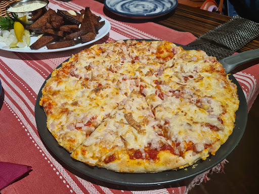Well, this was something else of an experience. The day before we had just arrived to Tartu and were now looking for best/good pizza place. We looked the reviews and considered different restaurants for an hour. Taverna pizza was decided sole cause online menu seemed ok, and other customer reviews seemed mostly ok. Few times i saw raw dough mentioned but nothing else bad so we went for it. We went into the place, the outer terass is ok, and waiters were polite and nice. We had few drinks while waiting for pizza and drinks here are cheaper in general than the nearby other restaurants, so very nice. We were very hungry though and then the pizzas came, quite quickly and we were surprised of the quick service. First bite in and well...when writing this i lost words. Both me and m wife lifted up our pizzas and saw that the pizza dough was half raw, (with many pizzas made home and eaten for my 42years of age since i love good pizza) we knew its raw and thats it. We mentioned it to waiter and the first instant response was that "its the cheese that does that the way we make it". Yeah ok we werent born yesterday so... little bit later waiter came back and we already ate about half the pizza and then they say that chef can make new. Ok guys, so to sum this experience together. We came here hungry for good pizza we saw from reviews, the overall taste was on the negative side. Bland and somewhat soggy raw pizza dough. Anyone can make better at home. So, i give 3 stars for good and friendly service, waiters seemed to kinda smooth the failure of the kitchen so dunno. This is an honest first time review and i was bit amused that in my head popped that i was in a Gordon Ramsey video episode from Ramsay's kitchen nightmares. I hope we had one time fault with food and you have better. Be fair warned...