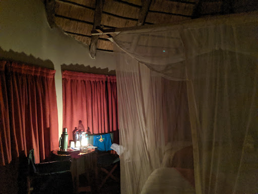 The accomodation is in very cute rondavels that are quite new and well maintained. The camp has no electricity apart from the restaurant and reception area, which is very charming. They light oil lamps for you at the huts, but the downside si that there's no ceiling fan so it gets quite hot. The game drives are very interesting for animal sightings. The buffet dinner is ok, but not...