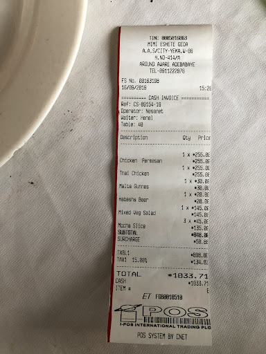 Read moreDo not leave Ethiopia without coming here! make a reservation Arrive hungry This place was not on my list of places to go, but the owner of the Guesthouse we are staying in took us here. We’re glad she did. Parking is difficult so take a cab or map it out to see about local transportation. The restaurant is not wheelchair accessible. Make sure you look too your left so you can feast your eyes on the deserts. The menu is in English and the prices are inexpensive for a restaurant of this quality. Food is made to order so if you have an allergy or a specific request let them know. My wife and I had the Louisiana Chicken (because our host ordered it for herself). The food was excellent. NOTE: as I understand, Ethiopia does not use hormones and chemicals in their food so it will taste different than in America (more like bio-organic free range chicken). The chef has international training and it shows in the food. If you want Ethiopian food do not come here. If you want excellent food and service in a nice atmosphere and well maintained...