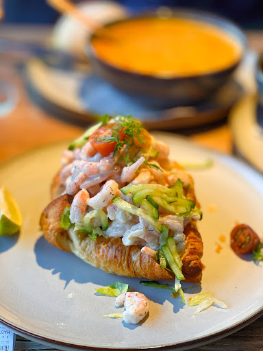 🥐 Shrimp Croissant Another specialty dish. Cold shrimp 🍤 tossed in salad dressing, with cucumber strips, cherry tomatoes, and lettuce - feels more like a breakfast-style shrimp salad. The croissant 🥐 has a slightly sweet, flaky texture that pairs beautifully with the shrimp.