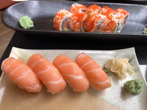 A highlight worth mentioning is the daikon roll. Despite the name, it’s not a veggie roll—it’s filled with salmon, chopped cucumber 🥒 and avocado 🥑. Clearly, the chef has a creative take on sushi. This type of roll isn’t common in traditional Japanese restaurants—it’s a modern twist. The thinly sliced daikon, in place of seaweed, gives it a smoother texture, and the cucumber adds freshness while the avocado brings richness—an unexpectedly well-balanced combination.