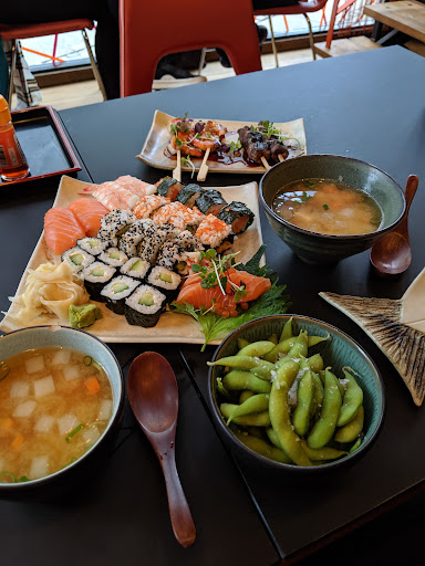As for the food, the experience was underwhelming to say the least. My partner and I are generally not picky eaters, but there really wasn't much positive to say about the food here. The miso soup we ordered arrived only luke warm. One of the fried starters we ordered was completely soaked in soy sauce to the point where we couldn't taste the actual fish anymore. The sushi rolls were extremely oversized and very loosely rolled, so that it was impossible to eat the sushi without it falling apart between your chopsticks. It made for a very unpleasant eating experience. Additionally, the sushi was heavily covered in all sorts of decorative greens and sauces that weren't advertised in the menu. While visually appealing, it really took away from the taste of the sushi and made it wholly unenjoyable. The eel in one of the rolls we ordered was riddled with fishbones that made it unedible.