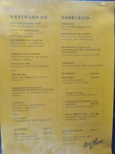 Slow service taking over 2 hours for basically 2 dishes on a not so busy Tuesday… and the price is ridiculous. 625 DKK (85 Euro) pr. Person for Antipasti + 1 pasta dish… Apparently they decided to remove the middle (Bisque/soupe) from the menu, so the only difference from the 485 DKK NORÐLÝSIÐ menu is the Salmon Carpaccio.