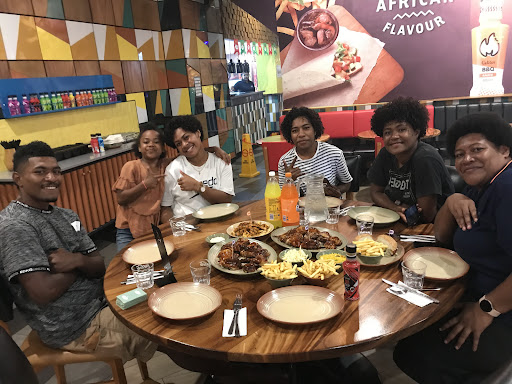 Located opposite Prouds in Nadi Town. Called ahead to reserve a table for 7 people. Once in the restaurant, table was reserved and menus given to us. We have to order at their counter and was explained in detail what each item in the menu was. Their menu are chicken based so we had two full chicken with beautiful BBQ sauce, delicious Jamaican Pizza, chicken strip, burgers. Dessert was milkshake for us. Different sauces to suit the taste buds. The ventilation can do some work as it does get very smoky inside. They had extra plates, utensils and servittes if needed. Went in there for a birthday celebration - don't expect a cake and birthday song to be arranged by the restaurant. You can get your own cake and celebrate in the restaurant with your family and friends. Don't expect fancy cocktails or mocktails - mostly soft drinks and water. Plenty of seating arrangement for all family types from small to big. Great for...