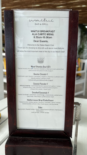 Read moreWaitui Bar & Grill within the Waitui Beach Club is an adults only restaurant on the resort, which is a great options for people not travelling with kids to get away from the noise and the chaos of the family areas. The breakfast here is really good, highly recommend the smashed guacamole with poached egg, eggs Benedict and the coconut pancakes. For lunch for afternoon meal, the pizza is a good option and easily feeds 2-3 people. The meals are pretty generous so sharing for lunch is a good options to not overdo it for dinner. Lunch options from 10:30am - 3:30pm available to order by the Waitui Beach Club pool or dine at the restaurant. The staff are just sensation, it’s amazing how friendly and attentive they are. Always greeting us by our names and making us feel welcome with their warmth and smiles. Service is incredible.