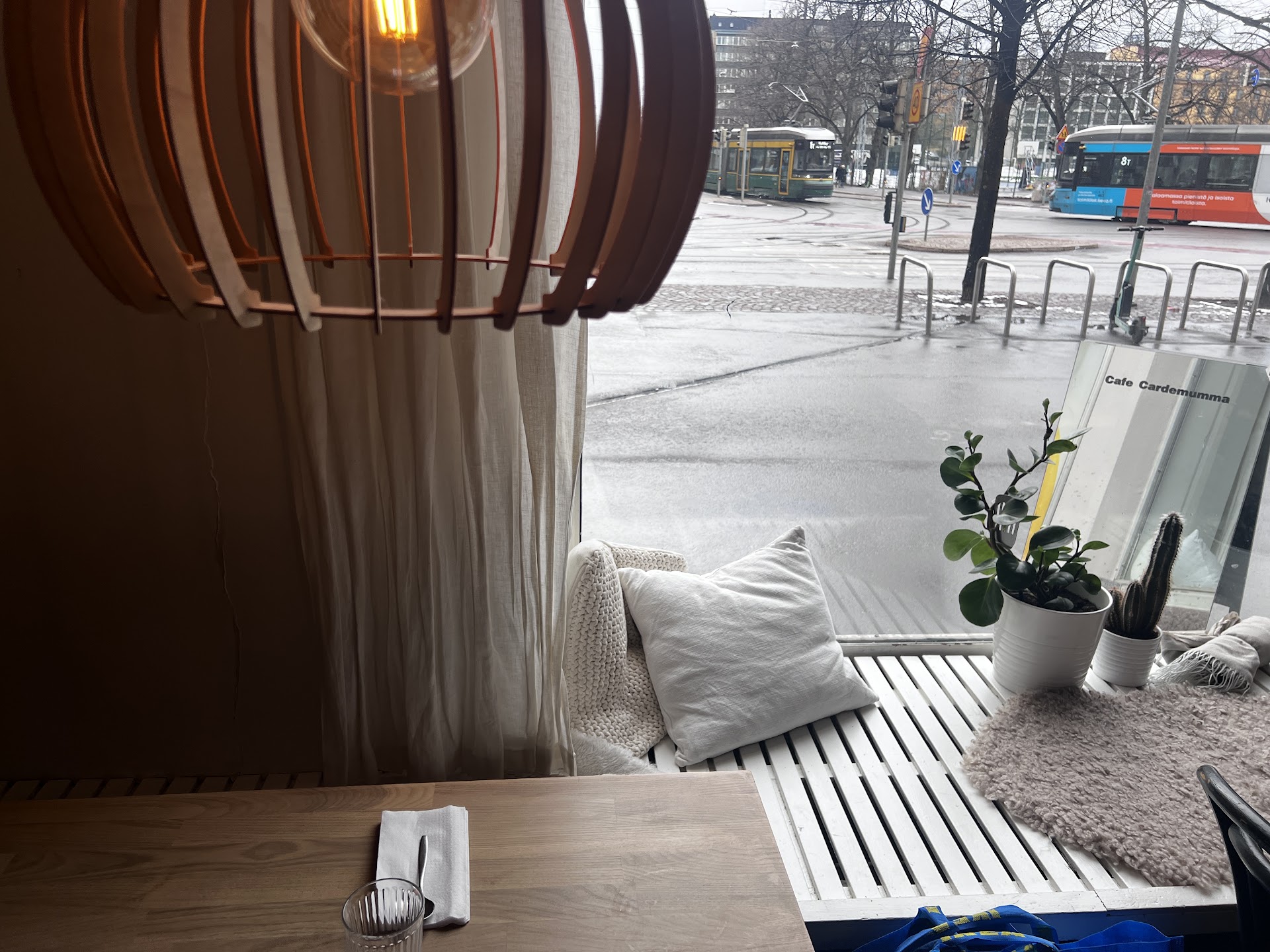 I saw this cute coffee shop from outside of the tram so i decided to take a lunch on my stay in Helsinki. On my travels i try to find small businesses like this one and support them as much i can. I ate mashed potatoes with zucchini + salad . It was homemade and good. Later on I wanted americano but i got filter coffee (probably they don’t have it but unfortunately girl that served me didn’t understood at all what I wanted). She was speaking great English so it was not about language. I took as well chocolate muffin, i asked same girl if cakes are homemade but unfortunately her interest to tell me about cakes was zero. So i took chocolate muffin that was not good, dry and full of soda bicarbonate. Atmosphere was nice, even though it is small place it is cute and cozy. Service, could improve a lot. I would like that someone told me that in my lunch is included small piece of cake (saw it later on when girl near...