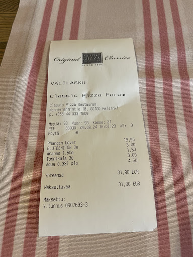 Read moreI have visited many Classic Pizza restaurant and was recently there after longer brake. I do not know whether owner has changed or what, but the size of the pizza was now clearly smaller than before and the white wine I knew tasted like it was diluted with water. A disappointment.