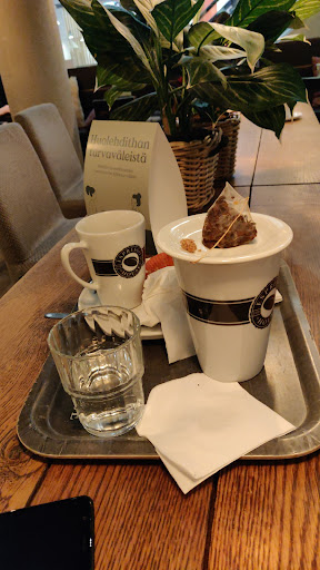 This Espresso house location is always very busy at it is located on the ground floor in the heart of Sello shopping mall. It can be challenging to find seating and you'll often have to sit with strangers on a table or couch seating area as spaces can be hard to come by. The food and drink quality varies quite a bit. Espresso House has some great sandwiches and food items, but also some that I personally did not enjoy at all. Please note, I am not a picky eater. The quality of their coffee products also varies quite a bit, from great to good to bad. Please note that I have a special interest in coffee and might be more picky in this area in comparison to the average customer. Espresso needs to be grinded and extracted just right. If one or both of these parameters are off the espresso can be very bitter or very acidic. Both has happened to me before. As I know I can not expect artisan level coffee products here and being a good barista takes training, I just put up with it by adding a lot of extra milk or even sugar, which I usually don't use in coffee products (filter coffee, espresso, cafe latte, etc). If I could make a wish it would be better and consistent coffee quality. I personally find Espresso House on the expensive side and hence don't go as frequently as I would if...