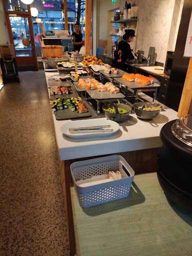 There's quite a lot of room and that space were needed because this place was packet during lunch hours. Interior design is quite modern looking japanese restaurant - so elegant yet modest. Customers seem to be young adults and youth in generally but there were some older people and mothers with their children. When I visited here their buffet cost 9.90 Euros from 11am to 3pm and 14.90 after those hours which aren't bad prices at all. I would call it cheap from all you can eat buffet of this sort.
