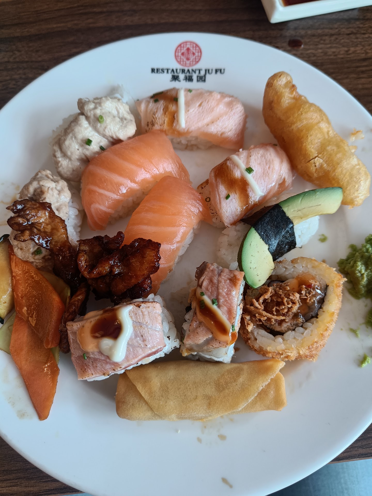 Read morePaikka taitaa elää vain Jumbon läheisyyden ansiosta. Ruoka ei ole kaksista. Tulimme arkena juuri lounasbuffet-ajan loppuessa, mutta kysyimme kassalla, onko 1) buffet tarjolla, 2) onko siellä sushia ja 3) onko siellä kasvissusheja. Kaikkiin vastattiin iloinen kyllä, mutta yllätys sushitiskillä oli karvas pettymys. Sushit olivat kuivahtaneita, ja osa oli niin niin epäilyttävän näköisiä, ettei niitä uskaltanut edes maistaa (=kuorrutettu majoneesilla). Seurueen kasvissyöjä otti kaikki kuusi (!) tarjolla ollutta kasvissushia (3 avocado + 3 inari/nigiri-mikälie), tämän jälkeen hän pyysi kaksi kertaa niitä lisää, saaden 5-6 kerrallaan. Kolmatta kertaa hän ei enää kehdannut näitä pyytää, vaikka olisi mielellään syönyt muutaman lisää. Toivottuja (kysyttiin minkälaisa hän haluaisi) makirullia, tai mitään muitakaan susheja ei lisätty buffetpöytään koko noin puolentoista tunnin asioinnin aikana. Kiinalais-thai-buffaruuat olivat haaleita, mutta onneksi niistä ei tullut kenellekään vatsanväänteitä. Chilipossu oli ainoa josta kirposi seurueelta kiitosta, koska oli tarpeeksi mausteista, mutta esimerkiksi thaimaalainen tofu-curry oli mautonta. Asiakaspalvelu oli minimissään, tarjoilijoiden huomiota piti hakea kovalla vaivalla ennen kuin sai kontaktia. Siisteys ok. Emme kuitenkaan usko palaavamme tähän paikkaan enkää ikinä. Ihmettelemme hyviä arvioita, taitavat olla vanhoja tai koskea Helsingin...