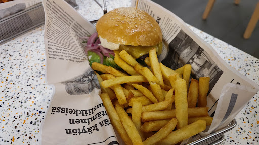 Read moreKäytiin syömässä pitaleivät naudanlihalla ateriana, johon kuului lisäksi ranskalaiset ja juoma. Ranskalaiset olivat kyllä hyviä ja tuoreita, mutta ikävä kyllä aterian kruunu. Pitaleivästä ei jäänyt muuta positiivista sanottavaa kuin tsatsiki-kastike ja sekin oli isketty yhdeksi möykyksi kuivaksi paahdettujen naudanlihalastujen päälle, josta se tippuikin pois melko alussa kun yritin mutustaa leipääni. Leivästäni karisi muutenkin puolet täytteistä pöydälle, syliini ja lattialle yrittäessäni suorittaa syömistäni. Ongelmaksi näkisin sen, ettei leivässä ollut kastiketta, joka olisi sitonut ainekset yhteen - lukuunottamatta tätä tsatsiki-soosia, joka sitoi lähinnä vain itsensä pois täytemöykyn päältä yrittäessäni sovittaa evästä suuhuni. Lukuun ottamatta kastiketta leipä jäi melko aneemiseksi kokemukseksi. Hinta ja laatu jäivät...