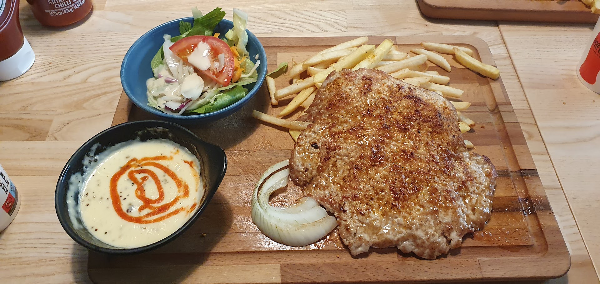 Read moreI ordered this delicious burger set which was an insanely huge portion. I couldn't eat all of it. This was definitely worth the money I paid for. The service was excellent, the owner was accomodating and even gave me a free drink. I checked their menu and they had other cheaper dishes which looked delicious too. I will definitely...