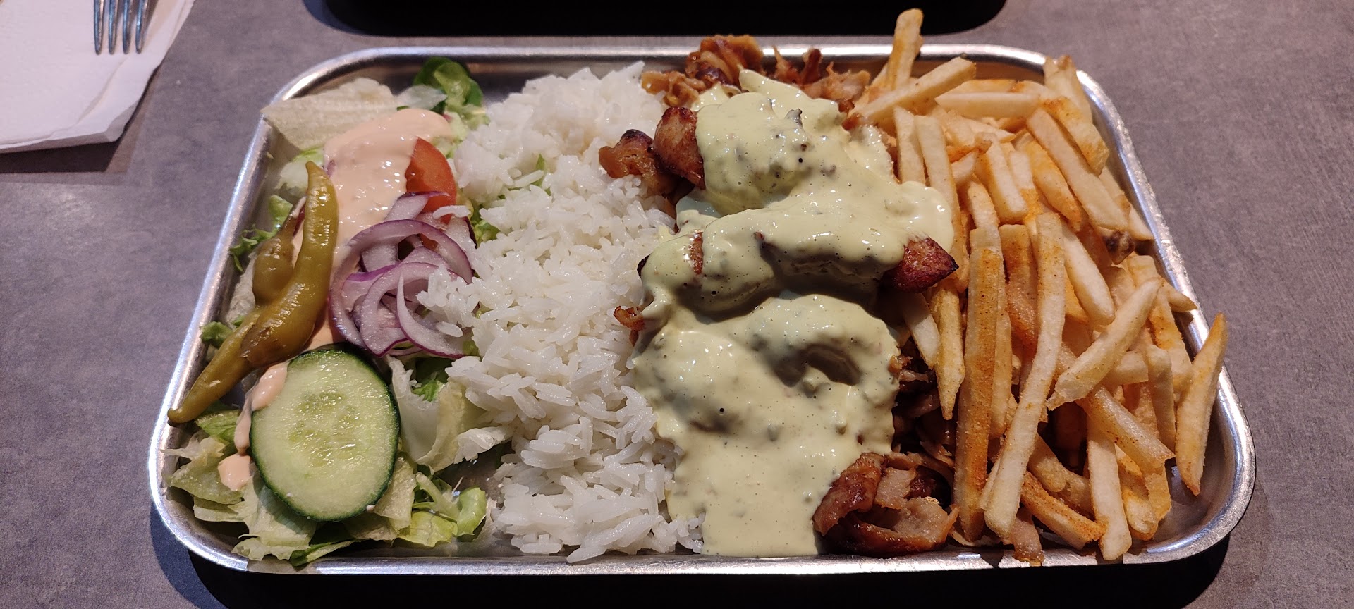 Read moreTasty kebab on a plate, big portion for a reasonable price. Drinks on tap available - Coca-cola, Fanta, Sprite. There is also a selection of sauces free of charge, so you can add it to your meal. Very friendly staff. If you can't eat all your meal onsite, you can ask for a box and bag. Friendly staff. Recommended ! The only thing that could be improved, could be better...