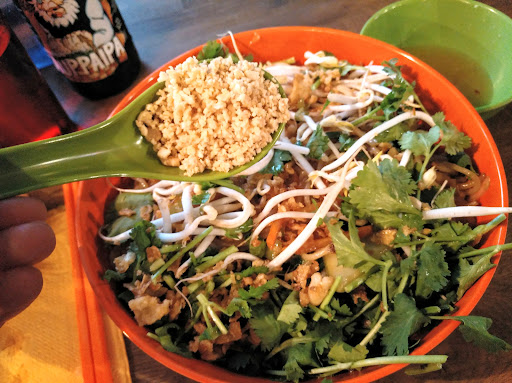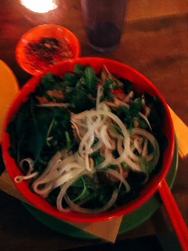 We ordered pork summer rolls (big, delicious) and Vietnamese noodles with chicken (one of us) and shrimp (the other). All of it was very nice and the portions were so big we ended up taking the leftovers home for the day after. It still tasted great!