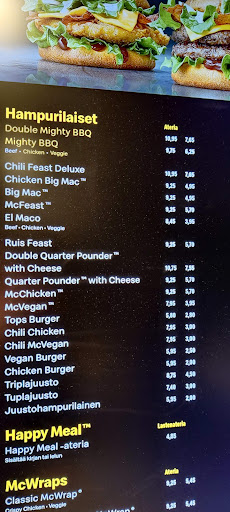 Read moreDịch vụ khách hàng hoàn toàn tệ hại, đồ ăn rất ngon đúng vậy (có hơi nhạt nhẽo) nhưng không đáng để trả €6 cho một cốc mcflurry và một ly sữa lắc tào lao nếu phải mất nửa giờ để làm chúng, cho đến nay, tôi ' tôi đã đợi một GIỜ rồi.. và tôi vẫn chưa nghe thấy gì về thức ăn của mình, theo anh ấy, hội đồng quản trị, nó thậm chí còn chưa được sản xuất. Đổ kem vào cốc và làm một ly sữa lắc khó đến mức nào? Và các món ăn nên được thực hiện theo thứ tự, ở đây rõ ràng ưu tiên dành cho những người mua hamburger thịt chuột. Lúc nào cũng vậy, những người có ca lớn hơn tôi sẽ nhận được đồ ăn của họ. MCFLURRY CỦA TÔI Ở ĐÂU???? Không nên khó đến thế. Nếu một người leo núi thậm chí không thể làm được một cây kem và một ly sinh tố thì có lẽ chúng không đáng để bán! Hãy kiếm một công việc khác nếu ngay cả một nơi thuộc tầng lớp thấp như McDonalds cũng quá khó khăn đối với bạn. Những người này thuộc những công việc hoàn toàn khác nhau. Lần cuối cùng tôi đến Mukäri, 5 năm trước, tôi đã thực sự buồn nôn vì món burger thịt chuột quá tệ. Ngay cả người Pháp cũng nhiều nước và ngay cả Puuha Pete cáu kỉnh cũng không ăn chúng. Nếu bạn không muốn mất tất cả khách hàng của mình, HÃY THAY ĐỔI ĐIỀU NÀY! Bạn cũng có thể đầu tư vào việc dọn dẹp, vì nơi này thật bừa bộn và ồn ào. Ruồi cứ bay tới đây giữa đống khoai tây chiên và khăn giấy, sàn nhà rất bẩn. KHÔNG LỚN đối với tôi! Một trong những quyết định tồi tệ nhất của tôi trong năm nay là đến đây, tôi thực sự hối hận. VÀ THỰC SỰ TÔI SẼ KHÔNG đến rạp xiếc này nữa, ở đây khá là buồn cười. Hãy thực tế khi bạn không thể làm được việc gì ở đây. Ở đây nóng quá và có mùi mỡ ôi ở đây khiến tôi muốn ngất đi…Tôi thực sự muốn ói. Tôi không hiểu làm thế nào có ai có thể tận hưởng chính mình ở đây! Nếu bạn muốn gặp những người điên rồ và nhận được dịch vụ hoàn toàn tồi tệ, và đợi 1h 10 phút để kem tan chảy, hãy đến Mäkkäri! Trong các trường hợp khác, tôi không khuyên bạn nên làm điều đó. Cảm ơn bạn vì trải nghiệm hoàn toàn điên rồ này. Tôi sẽ không đến đây nữa, sau này tôi sẽ kinh doanh tại Hesburger như mọi khi! Mäkkäri = một cái bẫy chuột bẩn thỉu vi phạm nhân quyền. Nhận trợ giúp cho các vấn đề sức khỏe tâm thần của bạn. ĐÂY...