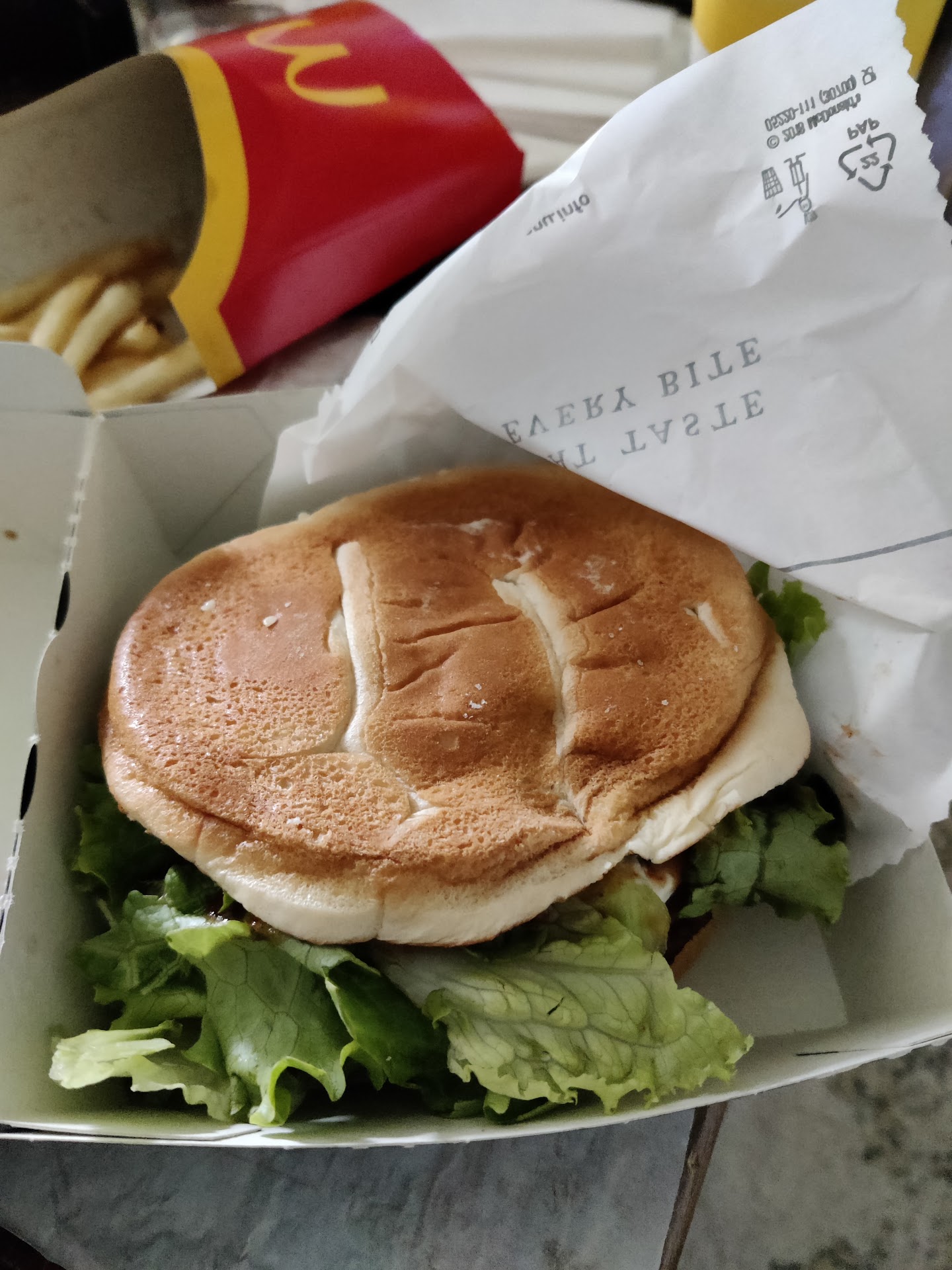 The deals were really good though. A McChicken meal 4.95€ which had a normal size burger and fries with a normal soda. The burger was a bit dry and could use a bit more moisture by some sauce or Mayo? The fries were tasty and had a nice salty taste, not too much though. They were not soggy. Fanta Lemon Zero is refreshing. I asked for pepper at the counter but got salt. The person serving me even repeated pepper but still have just extra salt. The other order was a chicken burger, fries and a regular milkshake at a mere 4€ flat. Excellent deal for the price.