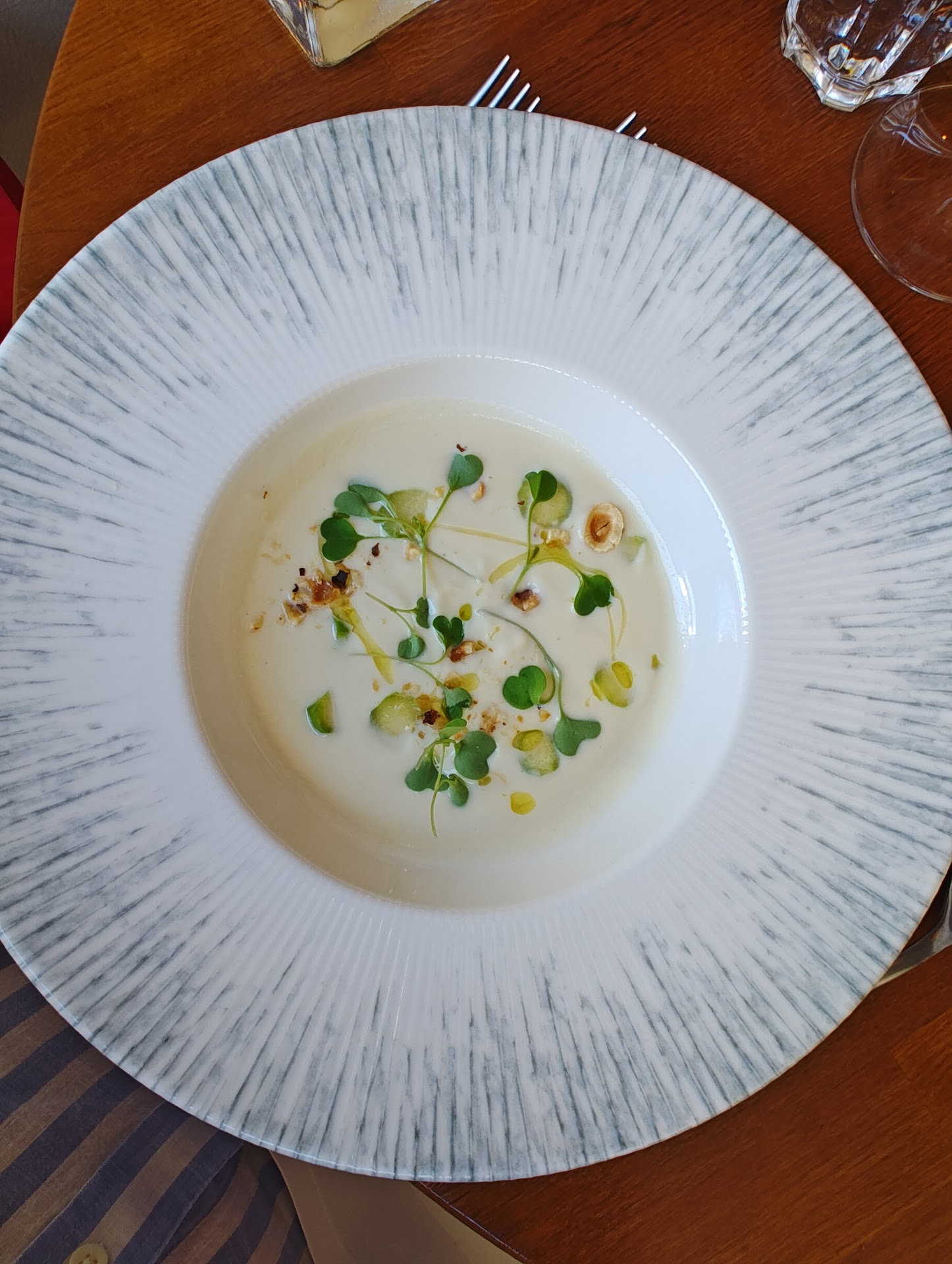 Crème Ninon with cauliflower and pickled ramson (16 €): Aterian kohokohta, raikas mutta täysin odotusten mukainen ja yllätyksetön.