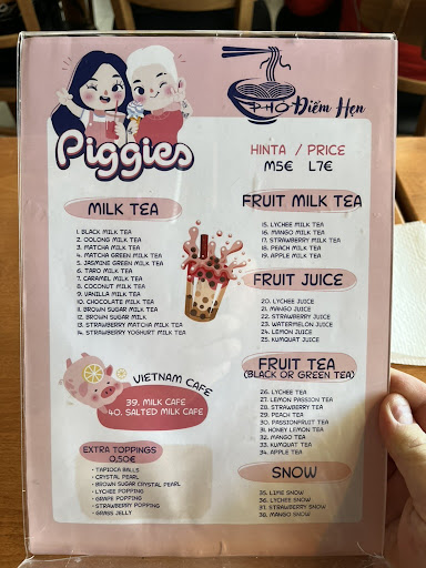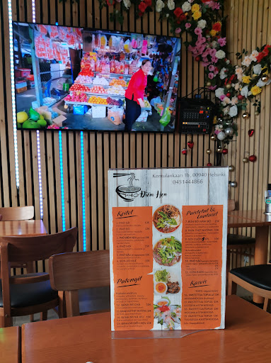 Read morePäätimme käydä kokeilemassa meille uutta paikkaa ja tämä vaikoitui. Kun menimme sisään niin paikalla ei ollut yhtään ruokailijaa. Eipä siinä mitään. Tiskin takana oli pirteä työntekijä joka tervehti iloisesti ja kyseli heti mitä me haluamme syödä. Listalta valikoitui annokset 7 ja 8. Kylkeen otimme kevätkääryleitä ja juomat. Tiskin takana oleva keittiö ei ollut iso. No ei koko paikkakaan ole iso. Yleisilme oli siisti. Ravintolan seinällä on iso TV jossa pyöri oletettavati Vietmanin kaduilta oleva video jossa oli kuvattuna paikallisia ravintoloita ja kauppoja. Hauska idea. Siinä pääsi joten tunnelmaan paremmin. Saimme odottaa ruokia noin 15 min. Kun tarjoilija toi ruoat pöytään niin samalla hän kertoi miten ruokia kannattaa tuunata koska annoksiin kuului mausteista kalalientä. Toisessa oli lämmin ja toisessa kylmä liemi. Hienoa palvelua. Ruoat olivat maukkaita ja riittävän kokoisia. Kevätkääryleet olivat ehkä etelä suomen parhaita mitä olen ikinä syönyt ja niitä kun kastoi mukana tulleeseen liemeen niistä tuli tosi mehukkaita. Hinta/laatu suhde ihan oikea. Menemme ihan varmasti...