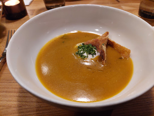 Read moreI chose this restaurant based on reviews, and far from being disappointed, I was surprised by how good it was! The restaurant employees were very nice, continously attending to our every need. The atmosphere was cozy and professional, perfect for catching up with family. And the food was delicious, both my guests and me were surprised! I ordered first pumpkin soup (13€) as a starter and then the cabbage roll (24€). Both were very nice and filling, and I think I could have just had the roll and I would have been fine. The roll was particularly astounding; I hadn't had such a delicious vegetarian dish ever! Thank you for this evening, and I will sure look forward to...
