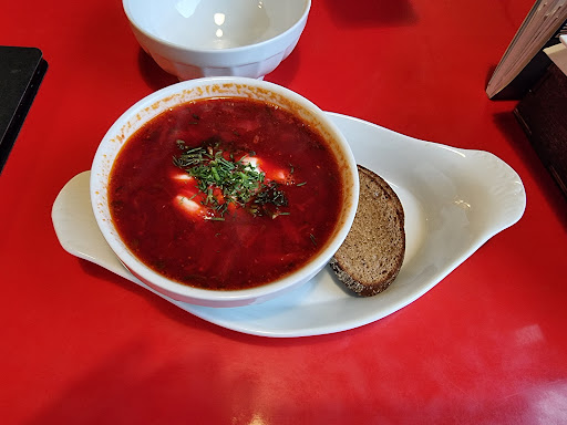 Read moreWe came here because we read about the place in our guidebook. I rarely eat Russian food, but my girlfriend does quite often, so we thought it would be nice to give it a try. We shared the Borscht as a starter and went for meat and vegetarian Pelmenis (dumplings) for main course. The Borscht was really good, I liked that it was vegetarian if you abstained from the additional meat. The taste was good and a nice garlic bread was served to accompany it. The Dumplings were tasty, even though the vegetarian ones mainly tasted like potatoes and you couldn't really taste the mushrooms. Still a good culinary experience. The only thing we have to "complain" is the size of the dishes compared to the price. The prices are quite high, but that's normal in Finland. Still the size of the dishes doesn't really keep up to it. In general I would definitely...