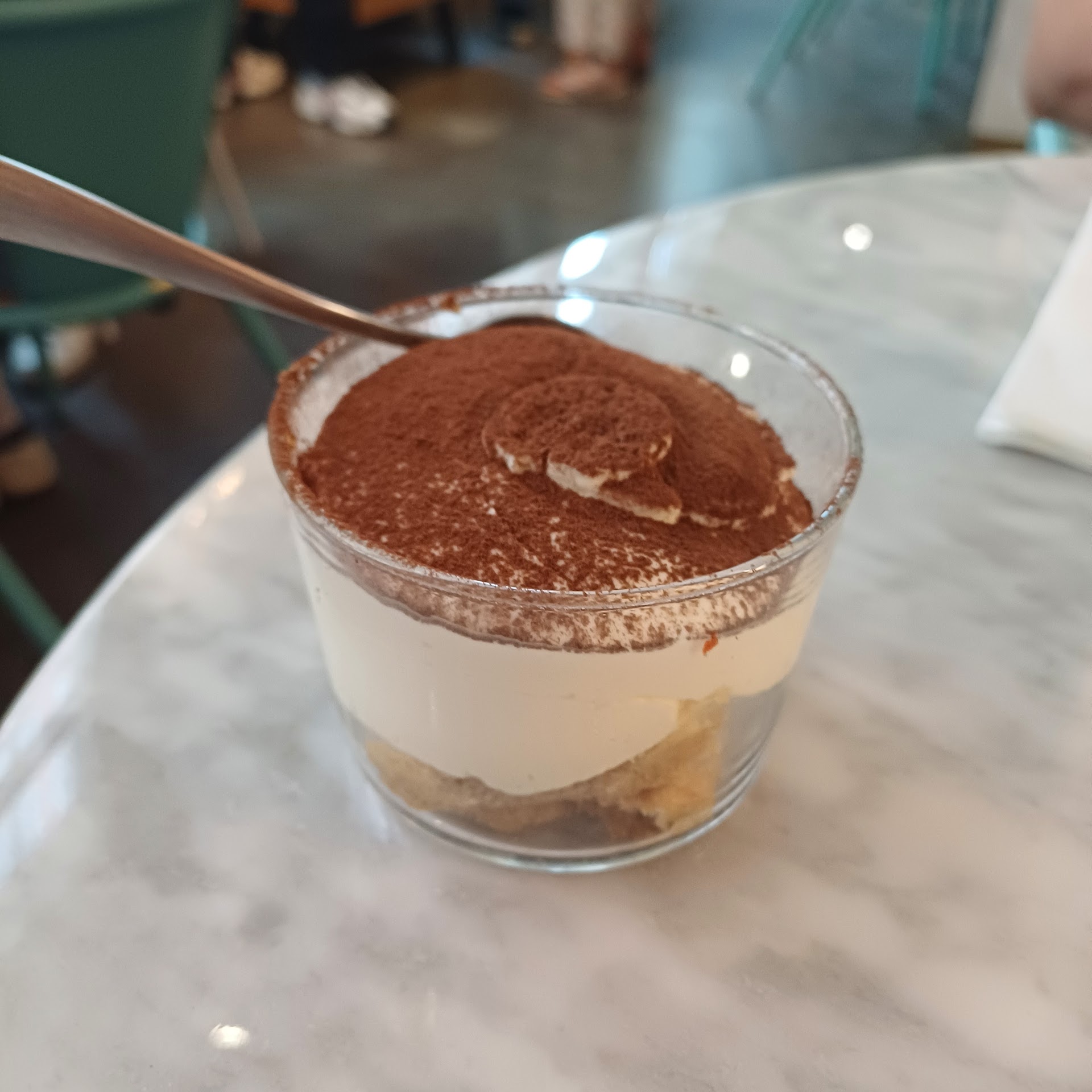 Read moreWent to the restaurant on a Sunday. We were given a shortened menu for the day. I'm assuming it was because the crowd and large amount of food would be hard to handle. Which was understandable. This fact could have been communicated better as "the lazy sunday" menu seemed to be some sort of a special offer. The food 4/5- we've tried "the queen", "yes please" and "stay hot" pizza. They were fantastic. The dough was soft and delicious. The sauce was amazing. And the salami on "stay hot" is simply fenomenal. The dough on the pizza was a bit too thin for my liking, and it made it soak up a lot of the souse. Desert 2/5- Also, I tried the tiramisu. I wouldn't recommend it. It was the only part of the whole meal that was just mid and basic. The biscuit didn't have the iconic kick to them. And the cream was boring. I also had a cappuccino. It was amazing. Either thanks to the beans, machine, or preparation. It was smooth and rich. The atmosphere was nice. Minimal and elegant. The venue and bathrooms were clean and well maintained. I will be returning as the pizza and coffee are truly fantastic. Next time, I will return during the week o try the rest of the venue. Really...